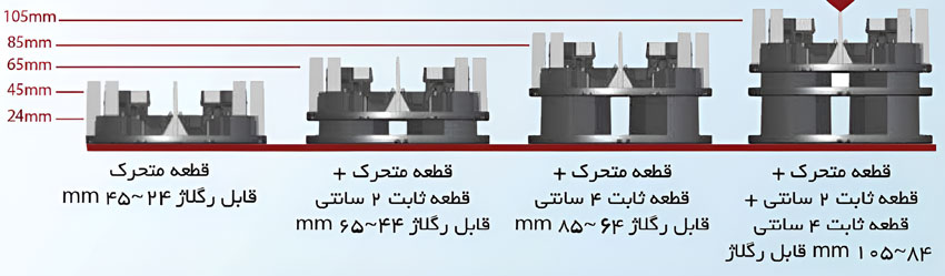 - برای دسترسی به تراز های بالاتر از دو قطعه دیگر (واسط 2 و 4 سانتیمتری) با تراز ارتفاعی ثابت می توان استفاده کرد.