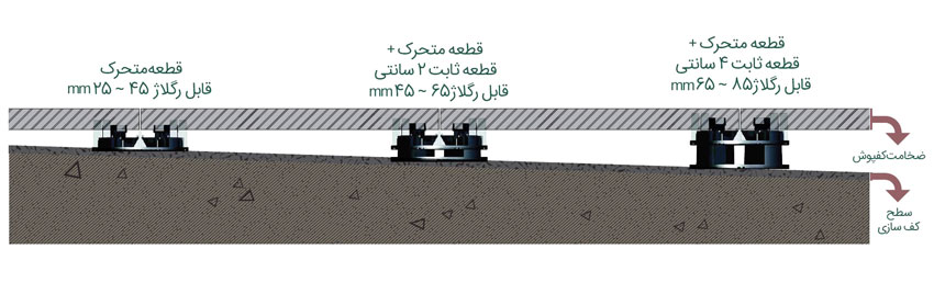 این پایهها امکان ترازکردن سطح و اجرای کفسازی تمیز، مرتب و قابل دسترس را فراهم میکنند.